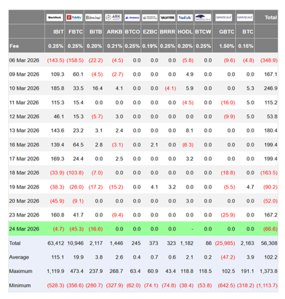 Відплив коштів зі спотових $BTC -ETF відновився і склав $66,6 млн.