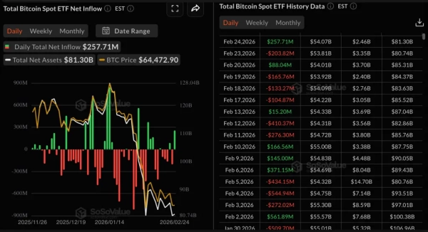 Поновлення зацікавленості з боку американських учасників підтверджується відомостями щодо біткоін-ETF. За результатами 24 лютого, інструменти привернули понад $257 млн – найбільший показник з початку лютого.