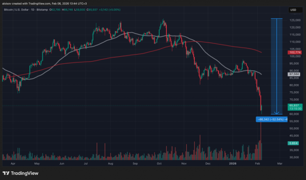 Біткоїн зареєстрував перше в історії щоденне зниження більш ніж на $10 000, опустившись до рівня $59 930 на платформі Bitstamp у п'ятницю, 6 лютого. Корекція склала 52,5% від історичного найвищого показника, зафіксованого 6 жовтня. Протягом 5 лютого вартість основної криптовалюти впала на 14%, а за три тижні біткоїн втратив $30 000.