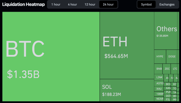 Карта ліквідацій за останні 24 години. Джерело: CoinGlass