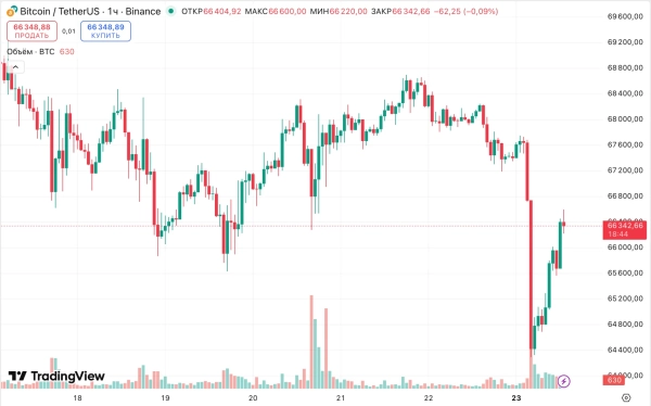23 лютого ціна знижувалася до локального мінімуму на позначці $64 435. Аналітики пояснили спад комбінацією факторів: