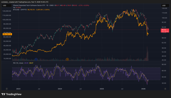 Вразливість ринку співпала з менш активним початком торгів американськими акціями, особливо у сфері програмного забезпечення, яке зазнало збитків. Індекс iShares Expanded Tech-Software Sector ETF (IGV) звалився на 3% і наразі на 30% нижчий за жовтневий максимум. Акції компаній, що займаються розробкою програм, відчули тиск через те, що поліпшення інструментів штучного інтелекту розцінюється як загроза їхнім підприємницьким моделям. Ринки формують загальну думку, і зараз переважає погляд, що біткоїн — це лише програмне забезпечення, тому якщо штучний інтелект є небезпекою для цього сектора, то він є небезпекою і для біткоїну.