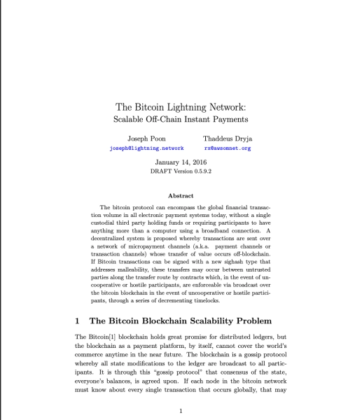 Whitepaper мережі Bitcoin Lightning Network. Джерело: Bitcoin Lightning Network