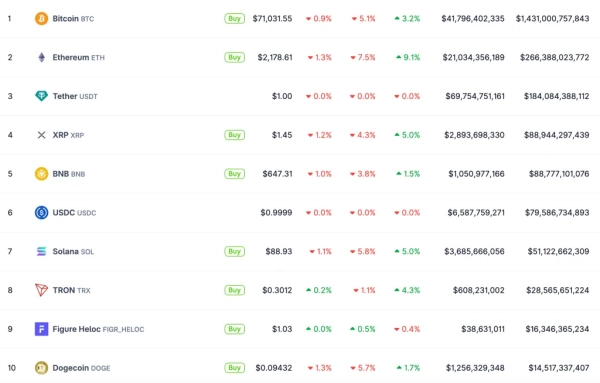 На момент публікації біткоїн оцінюється приблизно у $71 300. Водночас, напередодні, цифрове золото випробовувало рівень $75 000, що стало найвищим показником з початку лютого.