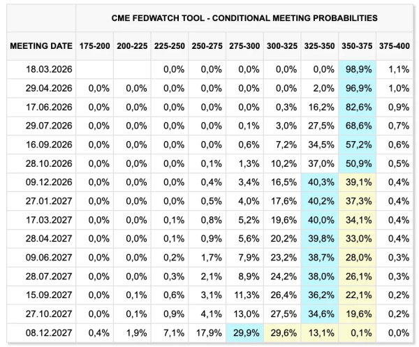 Нові відомості роблять послаблення монетарної політики ФРС ще менш вірогідним. Найближче засідання FOMC відбудеться 18 березня. Інвестори переконані, що регулятор залишить ставку в поточному діапазоні.