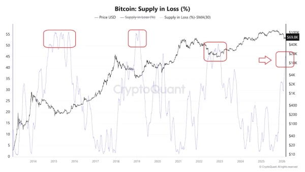 За відомостями CryptoQuant, аналогічні цифри історично фіксувалися під час переходу ринку до ведмежих трендів або періодів значних корекцій. У минулих циклах — зокрема у 2015, 2019 та 2022 роках — збільшення обсягу монет у збитку супроводжувалося посиленням тиску на ринок та зростанням реалізації збитків.
