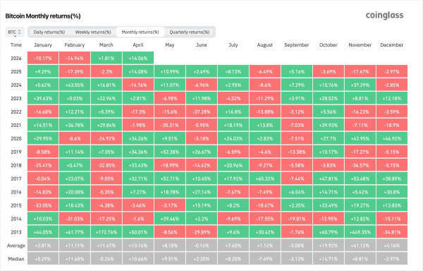 Квітень може стати для біткоїну одним із найкращих місяців за останні півтора роки. За інформацією CoinGlass, за останні 24 дні ціна активу збільшилася на 14,3% – максимум з листопада 2024 року.