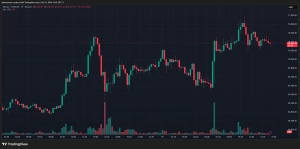 На момент написання біткоїн торгується близько $70 300, збільшившись приблизно на 1,5% за добу.