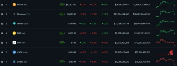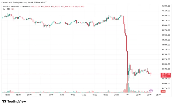 19 січня вартість провідної криптовалюти скотилася з відмітки $95467 до $92263, втративши 3,3%. Слідом за біткоїном у негативну зону перемістилися основні альткоїни.