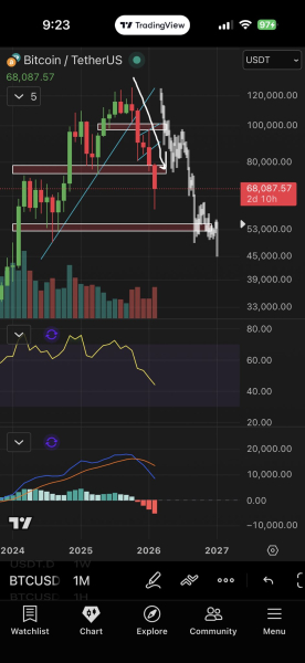 Трейдер Roman звернув увагу на типові параметри зниження у минулих “ведмежих” циклах. За даними Glassnode, у попередніх циклах біткоїн втрачав близько 80% від пікового значення. На 15-місячному мінімумі, зафіксованому на початку лютого, найбільша корекція $BTC /USD склала близько 53% від історичного максимуму жовтня 2025 року. Roman застеріг від поспішних висновків: кожен “ведмежий” цикл супроводжувався падінням майже на 80%, а на місячному та тижневому графіках ознак розвороту наразі не спостерігається.