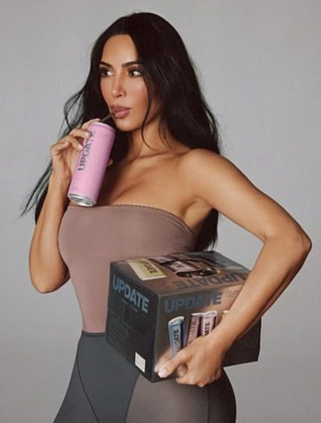Кім Кардаш’ян потрапила під вогонь критики за можливе ретушування зовнішності на промо-фотографіях для її нового бренду енергетиків Update. Напої, що не містять кофеїну та цукру, з пара-ксантином у складі, з’являться в 4 000 магазинах Walmart з 1 березня.