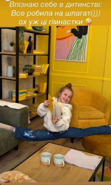 Окремо Лілія Ребрик продемонструвала, як дочка впевнено виконує гімнастичний місток. За словами телеведучої, для дівчинки немає різниці, де перебувати — необхідні вправи вона робить за будь-яких обставин.